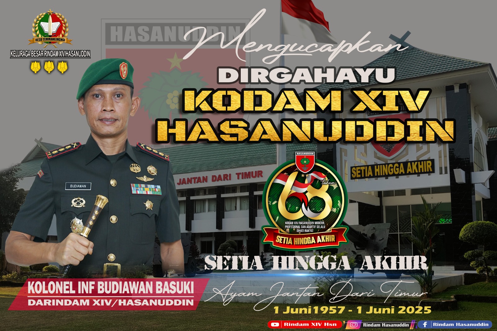 Dirgahayu Kodam XIV/Hasanuddin Yang ke 68 tahun. SETIA HINGGA AKHIR AYAM JANTAN DARI TIMUR Ewako, Ewako, Ewako 🔥