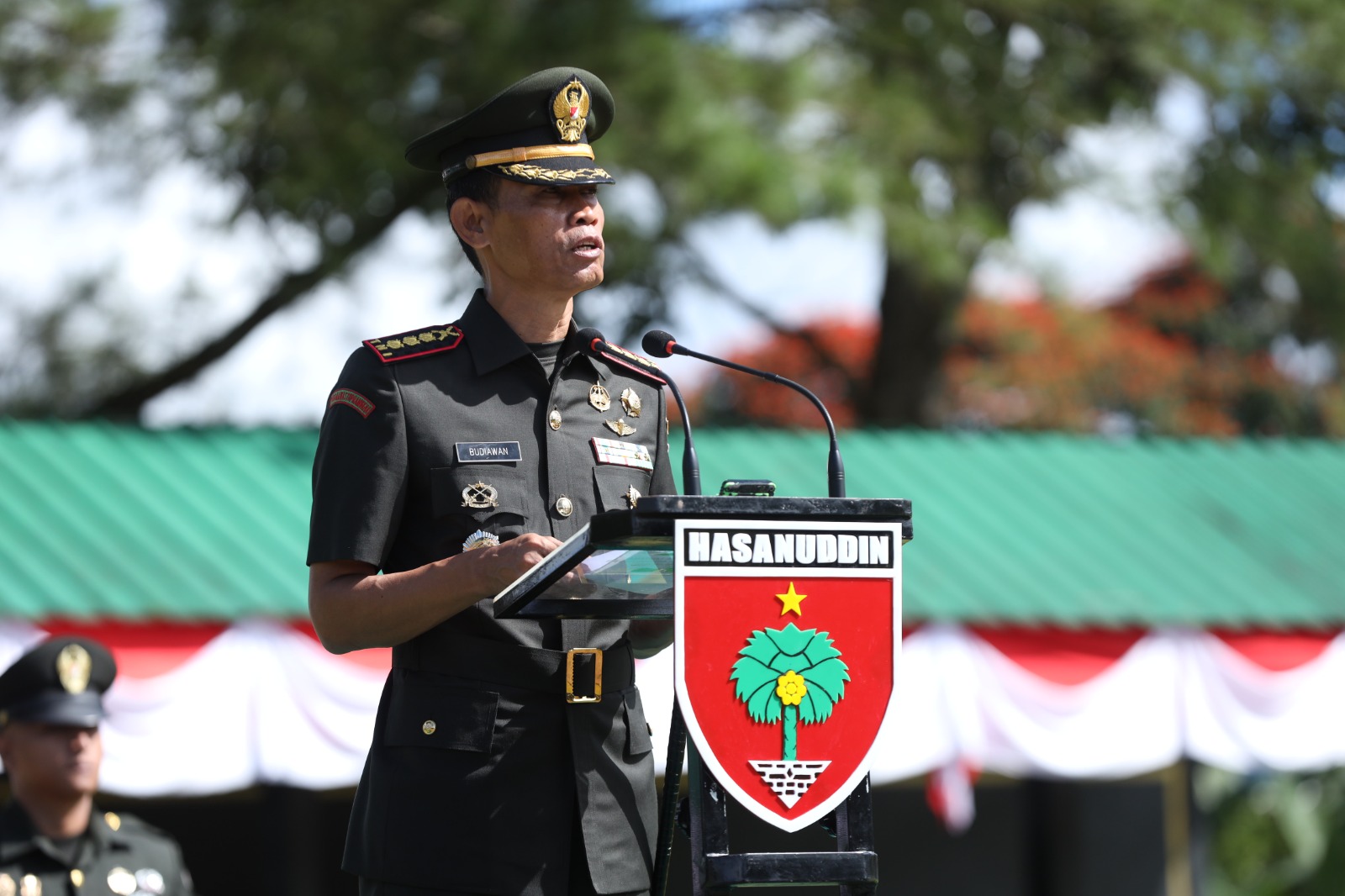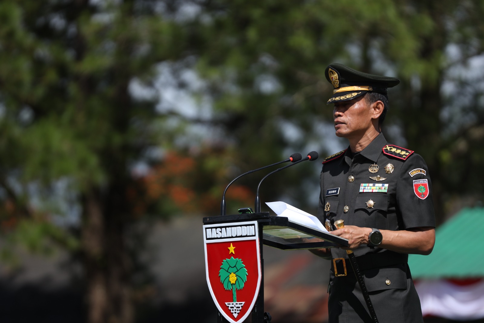 Kolonel Inf Budiawan Basuki, selaku Danrindam XIV/Hasanuddin, secara resmi membuka Pendidikan Pertama Tamtama TNI AD Gelombang I Tahun Anggaran 2025 di lapangan Prayudha Secata Rindam XIV/Hasanuddin pada hari pertama bulan Ramadhan. Sebanyak 1.158 calon prajurit telah terpilih melalui seleksi ketat mencakup aspek kesehatan, fisik, akademik, kejiwaan, dan administrasi. Sabtu,01/03/2025. Dalam amanat Mayjen TNI Windiyatno Pangdam XIV/Hasanuddin yang dibacakan oleh Danrindam, ditekankan pentingnya pendidikan ini dalam membentuk prajurit profesional yang berjiwa Sapta Marga, Sumpah Prajurit, dan Delapan Wajib TNI. Pendidikan berlangsung selama 15 minggu dengan latihan dasar kemiliteran yang membutuhkan fisik prima, mental tangguh, dan kemampuan akademik yang baik. Pangdam XIV/Hasanuddin juga mengingatkan para instruktur untuk membimbing para siswa dengan disiplin tinggi agar mereka menjadi prajurit yang PRIMA (Profesional, Responsif, Integratif, Modern, dan Adaptif).
