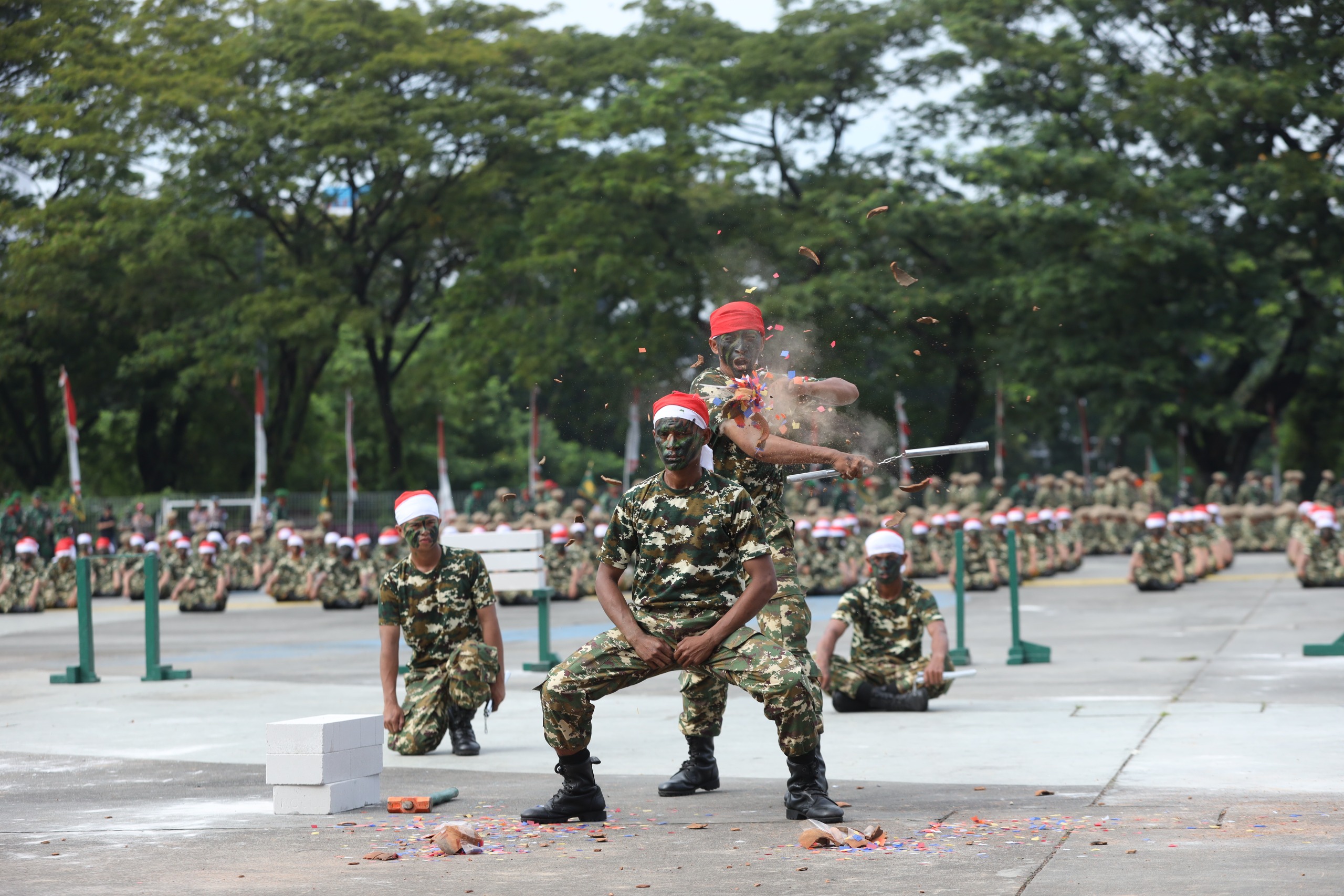 Penutupan SPPI Batch-3 Kolat XIII Makassar, Perkuat Pertahanan Negara dan Wujudkan SDM Menuju Indonesia Emas 2045. Rasa haru, bangga, dan syukur mendalam terpancar dari raut wajah para mantan siswa Sarjana Penggerak Pembangunan Indonesia (SPPI) Batch-3 TA.2025 saat mengikuti Upacara Penutupan Pendidikan Dasar Militer (Diksarmil), Pelatihan Manajerial, dan Penetapan Komponen Cadangan, yang dipimpin langsung oleh Pangdam XIV/Hasanuddin, Mayjen TNI Windiyatno, di Lapangan Karebosi, Jl. Jend. A. Yani, Kota Makassar, Sabtu (12/07/2025). Sebanyak 1.658 peserta SPPI dari Kolat XIII Makassar secara resmi ditetapkan sebagai Komponen Cadangan (Komcad), terdiri dari 852 lulusan Rindam XIV/Hasanuddin, 651 dari SPN Polda Sulsel, dan 155 dari Kodiklatal Makassar. Mereka merupakan bagian dari 30.018 peserta SPPI yang tersebar di 15 Kolat seluruh Indonesia,Setelah menempuh perjalanan Pendidikan Selama (3 bulan). Rasa Syukur itu juga menjadi penegas betapa program SPPI telah memberi dampak mendalam dalam membentuk karakter dan membangun semangat bela negara. Pendidikan dilakukan secara kolaboratif oleh TNI, Polri, dan Universitas Pertahanan RI, dimulai dari Diksarmil (14 April – 11 Juni 2025) hingga Manajerial (12 Juni – 12 Juli 2025). Dalam amanat Menteri Pertahanan RI, Sjafrie Sjamsoeddin yang dibacakan oleh Pangdam, ditekankan bahwa program SPPI merupakan bagian dari kebijakan strategis Presiden RI untuk memperkuat pertahanan negara melalui pembentukan SDM unggul. Menhan juga mengajak para peserta untuk menjadikan bekal ilmu, disiplin, dan pengalaman selama pendidikan sebagai dasar dalam memberikan kontribusi nyata bagi bangsa. Puncak acara juga dimeriahkan dengan kirab kebangsaan sebagai bentuk sukacita dan rasa bangga dari para lulusan. Ribuan peserta dan puluhan kendaraan ikut ambil bagian, termasuk siswa SPPI, drumband Yonif 726/Tamalatea, IPDN Gowa, Dispora Makassar, mitra Kodam, serta komunitas mobil kuno dan offroad. SPPI Batch-3 Rindam XIV/Hasanuddin.