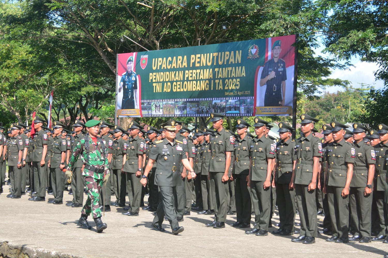 Upacara Penutupan Dikmata TNI AD Gelombang 1 Tahun 2025 Upacara penutupan pendidikan pertama tahun ini dilangsungkan serentak di dua lokasi berbeda, yaitu: Lapangan Prayudha Secata Rindam XIV/Hasanuddin, Malino, Kabupaten Gowa, dipimpin langsung oleh Mayjen TNI Windiyatno (Pangdam XIV/Hasanuddin). Lapangan Yudha Wastu Pramuka Dodiklatpur Rindam XIV/Hasanuddin, Bance’e, Kabupaten Bone, dipimpin oleh Brigjen TNI Sugeng Hartono, S.E., M.M. (Kasdam XIV/Hasanuddin). Jumat, 26 April 2025. Dalam amanat Kepala Staf Angkatan Darat (Kasad) yang dibacakan oleh Mayjen TNI Windiyatno, disampaikan: Ucapan selamat dan apresiasi kepada 17.427 prajurit yang resmi dilantik dari total 17.444 calon yang direkrut. Pendidikan yang berlangsung sejak 1 Maret – 25 April 2025 telah membentuk karakter, kemampuan, dan disiplin prajurit. Ditekankan bahwa pendidikan ini adalah awal dari pengabdian, bukan akhir perjuangan. Prajurit diminta terus mengembangkan diri, menjaga integritas, menjunjung etika militer, dan loyal terhadap bangsa dan negara. Tugas ke depan tak hanya berkaitan dengan aspek tempur, tetapi juga menjadi penggerak pembangunan di wilayah penugasan. Harapan agar semua ilmu dan pengalaman selama pendidikan dijadikan bekal untuk menghadapi berbagai tantangan tugas ke depan.